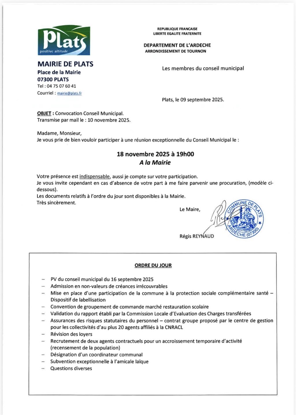CONSEIL MUNICIPAL MARDI 18 NOVEMBRE À...