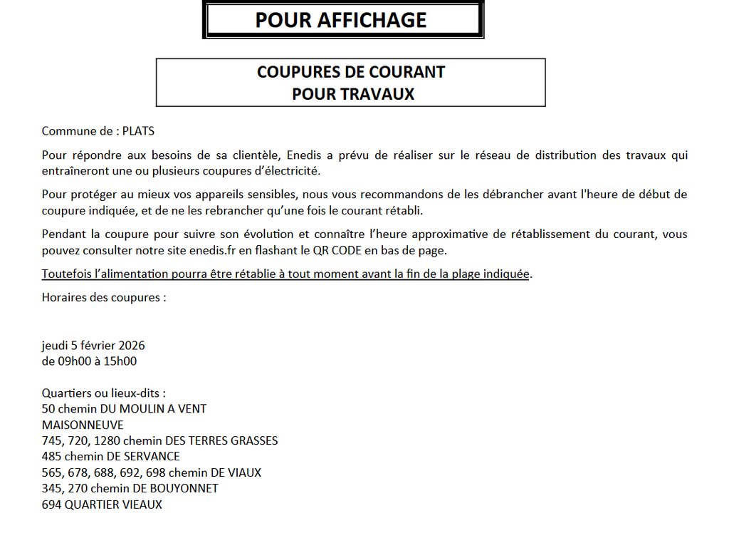 COUPURES DE COURANT POUR TRAVAUX