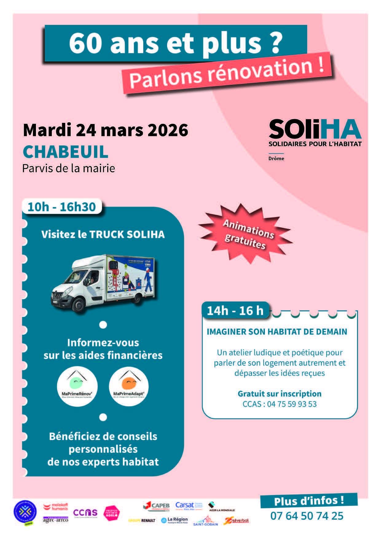 Le mardi 24 mars, le « Truck SOLIHA » fera escale devant la mairie de 10h à 16h.